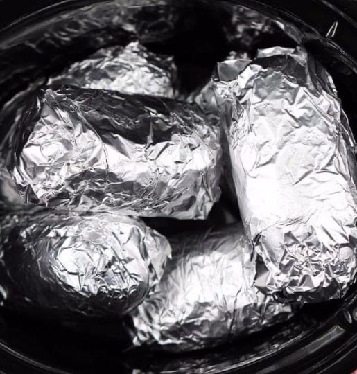 Wrap potatoes in tin foil and put in crock pot. Enjoy this lip-smacking result
