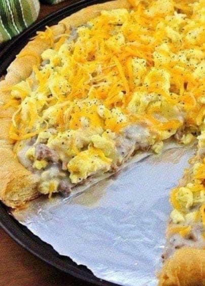 ingredients °2 packs of crescent rolls °1 package of cooked sausage crumbs °1 packaged country broth mix °6 eggs °2…