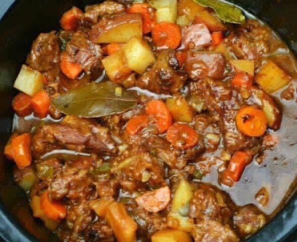 Ingredients 2 pounds beef stew meat ½ cup all purpose flour 1 tablespoon seasoning salt 2 tablespoons olive oil…